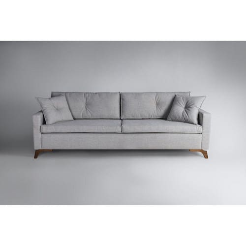 Modelo de living, detalhes em botonê e formato em linhas retas, o sofá Viena é a mistura perfeita entre o moderno e o clássico. Assentos de molas bonnel e percintas elásticas, almofada solta e espuma densidade 28 soft, revestido com manta de silicone, encosto de almofada solta com fibra de silicone, estrutura de madeira de eucalipto, fixação grampos resinados e parafusos. Pés em madeira. Produto Montado: Sim Acompanha Almofadas extras: 02 Acompanha Chaise: Não Almofada do assento: Removível Almofada do encosto: Removível Altura do assento até o chão: 45.0000 Altura do Encosto: 50 cm Altura dos Pés: 15 cm Ambiente Principal: Sala de Estar codigo_ean: 7908388148433 Complexidade da Montagem: Baixa: pode ser montado por uma pessoa sozinha Consistência do Assento: Médio Cor: Cinza Cor do Produto: Cinza Enchimento do Assento: Fibra Siliconada Enchimento do Encosto: Fibra Siliconada Extensível: Não Itens Inclusos: 1 Sofa e Manual de montagem Manual de Montagem e Instalação: https://product-hub-prd.madeiramadeira.com.br/625264/documents/39029498-4268-477c-a910-8f234ae7dcf233324manualdemontagemviena.pdf Material dos Pés: Madeira Necessita Montagem: Sim Origem do Produto: Nacional Peso: 45 kg Possui Percintas Elásticas: Sim Possui Pés: 04 Possui Rodízio: Não Reclinável: Não Recomendações de Uso, Manutenção e Limpeza: Não utilizar produtos químicos ou abrasivos na limpeza do estofado.Para limpeza de líquidos, utilizar pano, levemente umedecido com sabão neutro. Não friccionar em demasia. Para secar, utilizar ventilador ou deixar o móvel em ambiente arejado, nunca exposto ao sol Resistente à Chuva: Não Retrátil: Não Rodízio com Trava: Não Sistema de Montagem: Parafusos Suporta Até (kg): 240 kg Tecido Predominante: Linho Tipo de Encosto: Fixo