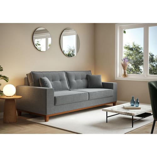 O Sofá Vitória combina conforto, elegância e praticidade em um único móvel. Seu design contemporâneo com linhas retas valoriza qualquer ambiente, seja na sala de estar ou em espaços compactos. Disponível nas opções de revestimento em linho ou suede, oferece um toque macio e aconchegante. O assento duplo e as almofadas soltas proporcionam relaxamento total. A embalagem otimizada (68x84x214 cm) facilita o transporte em elevadores e corredores estreitos, ideal para apartamentos. Um sofá bonito, funcional e fácil de locomover. Marca: Não Informado
