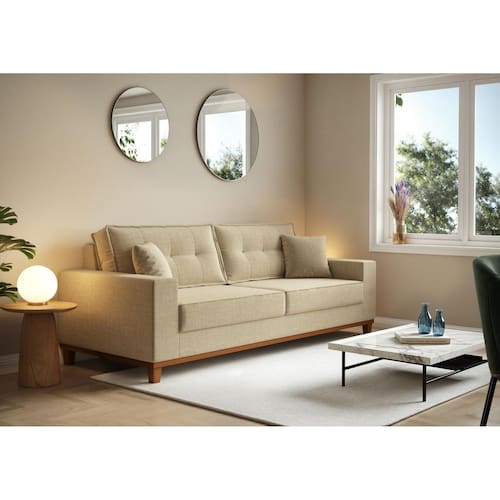 O Sofá Vitória combina conforto, elegância e praticidade em um único móvel. Seu design contemporâneo com linhas retas valoriza qualquer ambiente, seja na sala de estar ou em espaços compactos. Disponível nas opções de revestimento em linho ou suede, oferece um toque macio e aconchegante. O assento duplo e as almofadas soltas proporcionam relaxamento total. A embalagem otimizada (68x84x214 cm) facilita o transporte em elevadores e corredores estreitos, ideal para apartamentos. Um sofá bonito, funcional e fácil de locomover. Marca: Não Informado