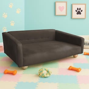 Sofazinho Cama Pet Baby Hanna Luxo Suede Sofazinho é ideal para quem quer dar ao seu animal de estimação um lugar próprio e confortável para relaxar e descansar. Além disso, a estética sofisticada do Suede e da madeira pode complementar a decoração da sua casa, adicionando um toque de estilo.