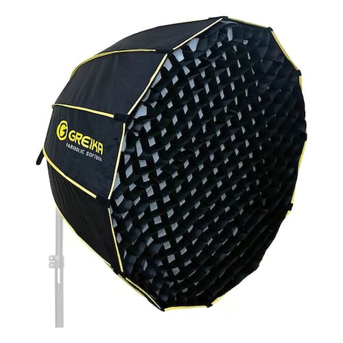 O Softbox Parabólico Greika GKH-45 é um modificador de luz compacto e versátil, ideal para quem busca iluminação suave e controlada na fotografia. Com 45 cm de diâmetro, ele produz uma luz mais direcionada, com transição suave entre luz e sombra, sendo indicado para retratos, fotografia de produto e uso em estúdio.