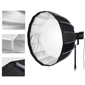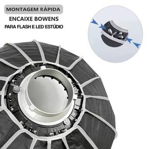 Com mecanismo de liberação rápida para configuração simples, o Softbox Parabólico RKP90 Bowens 90cm com Grade Montagem Fácil é um modificador de luz poderoso para uso em Iluminadores LED e Flash de Estúdio Bowens, que fornece diâmetro amplo de 16 lados e traz luz pronta em poucos segundos para retratos, fotografias de moda, fotografia de produtos, filmagem ao ar livre, entre outros tipos de fotografia e produções de estúdio. O softbox Circular Compacto RKP90 é o equipamento ideal para fornecer uma luz suave mais focada com os difusores ou sombras mais nítidas quando sem difusores. A estrutura parabólica hexadecágono é reforçada por 16 hastes de suporte duráveis, que agora se encaixam com a pressão para baixo de seu suporte Bowens Mount amplamente compatível, economizando valioso tempo no set. Seu formato também promove distribuição uniforme de saída de luz para uma luz suave e uniforme em qualquer imagem. Devido à sua forma parabólica, o Softbox de Estúdio RKP90 apresenta um interior prateado para maximizar a saída da fonte de luz e vem com um difusor interno e um difusor frontal de 1.5 Stops e 2.5 Stops respectivamente, além de uma grade de tecido de 40 para maior capacidade de modelagem de luz, tornando a iluminação suave e agradável. O tecido interior reflexivo reduz os pontos onde a luz não alcança. Use a grade para controlar com precisão a direção da luz ou os difusores internos para obter diferentes níveis de suavidade. As hastes do Softbox Parabólico para Luz Contínua possuem alavancas de liberação individuais, você pode montar e desmontar o softbox de maneira bem simples. utilizando suporte Bowens universal, o Softbox Parabólico de 90cm é perfeito para uma variedade de Iluminadores LED Bowens Mount, também é compatível com Flashes de Estúdio Bowens. além disso, uma bolsa de armazenamento e transporte está inclusa, permitindo guardar ou levar o equipamento a qualquer lugar.Principais Características: Softbox Circular Hexadecágono de 90cm, distribuição de luz suave e uniforme Montagem Padrão Bowens, fácil encaixe e desmontagem, ampla compatibilidade sistema de configuração simples com travas de liberação rápida Interior Prateado altamente reflexivo, maximizando a produção de fotos ou vídeos difusor interno e frontal removíveis, para obter diferentes níveis de suavidade Grade de controle de luz em tecido 40º incluída Tamanho compacto e portátil para viagens e espaços apertados Acompanha Bolsa de Transporte Ideal para estúdio fotográfico, transmissão , filmagem ao ar livre, retratos, fotografia de produtos e muito mais.Iluminador, Tripé ou Iluminador não estão inclusos, são vendidos separadamente. Imagens Ilustrativas.