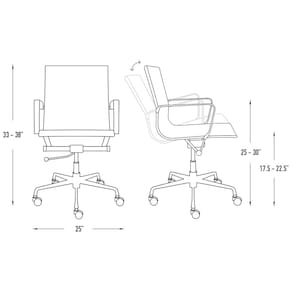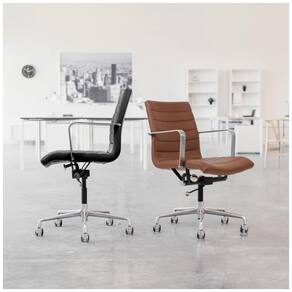Cadeira de escritório moderna de meados do século de Laura Davidson Direct. Construção de nível para a casa ou escritório. Canais em relevo térmico Circulação de ar mais resistente e superior. Estrutura de aço cromado, assento de couro sintético com nervuras com braços de alumínio removíveis. Base de alumínio extra forte 5 estrelas. Inclinação, giro e altura ajustável. Rodízios giratórios Metro, adequados para pisos de madeira e tapetes de pelo baixo Marca: Não Informado