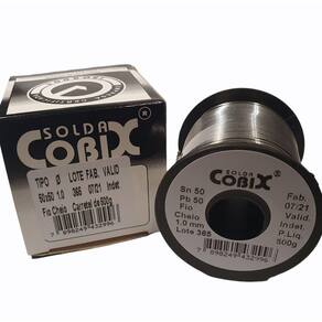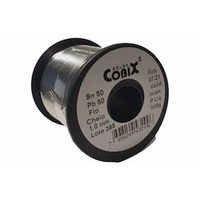Solda estanho 50x50 1.0mm carretel 500g fio cheio - cobix Bem vindos a redemeke somos oficial cobix Solda cobix simplesmente a melhor Aplicação: para ou amador, ela é perfeita para artesanato e bijuterias 1.0mm , mas pode ser Utilizado na soldagem de conexões em tubulação de água, tubos de cobre, para o transporte de líquidos ou gases não corrosivos, com auxilio de ferro de soldar ou maçarico aquecido a gás temos em nossa loja . Ideal também para usar com gota magica para soldagem de cobre com aluminio. Não contém fluxo interno. Requer uso de um fluxo pasta para auxiliar na soldagem, ou seja, você precisará de fluxo ou pasta para realizar sua solda lembre-se de comprar junto em nossa loja Segurança: contém Cinza: o Cinza pode ser prejudicial se absorvido pelo sistema digestivo. Não deve ser permitido comer, beber , ou fumar na área de trabalho. As mãos devem ser bem lavadas com água e sabão depois de manusear a solda, principalmente antes de comer ou fumar. Validade indeterminada. O que você vai receber: 01 carretel solda estanho 50x50 1.0mm rolo fio cheio - cobix - 500 gramas aprox. 80 metros Marca: Não Informado