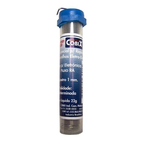 Solda Tubinho Cobix Azul 22 Gramas especificacao: AzulTubinhoSolda em Fio com Fluxo RA(T2)AtivadoEspecial para Reparos em aparelhos Eletro-EletrônicosPeso Líquido: 22gDiâmetro: 1mm Nossos produtos são o resultado de um rigoroso processo de seleção e controle, que garante que cada detalhe seja perfeito.Utilizamos materiais da mais alta qualidade e aplicamos as melhores práticas do setor para r itens que não são apenasfuncionais, mas também inovadores e duráveis. O que nos distingue é a nossa paixão pela excelência Cada membro da nossa equipe compartilha o mesmo objetivo: proporcionar a você produtos que você possa confiar e se orgulhar de utilizar.Acreditamos que a qualidade não é apenas uma característica, mas um reo do nosso compromisso com a satisfação de nossos clientes.