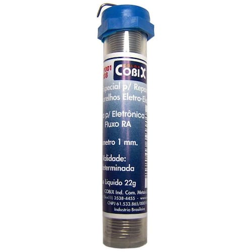 Solda Tubinho Cobix Azul 22 Gramas Especificacao: AzulTubinhoSolda em Fio com Fluxo RA T2 AtivadoEspecial para Reparos em aparelhos Eletro-EletrônicosPeso Líquido: 22gDiâmetro: 1mm Nossos produtos são o resultado de um rigoroso processo de seleção e controle, que garante que cada detalhe seja perfeito.Utilizamos materiais da mais alta qualidade e aplicamos as melhores práticas do setor para entregar itens que não são apenasfuncionais, mas também inovadores e duráveis. O que nos distingue é a nossa paixão pela excelência Cada membro da nossa equipe compartilha o mesmo objetivo: proporcionar a você produtos que você possa confiar e se orgulhar de utilizar.Acreditamos que a qualidade não é apenas uma característica, mas um reflexo do nosso compromisso com a satisfação de nossos clientes. Marca: Não Informado