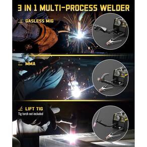 H HZXVOGEN Soldador MIG 140A, 110V/220V Flux Core Welder, Lift TIG, Stick 3 em 1 IGBT Inverter Portátil Máquina de Soldadura Digital - Soldador 3 em 1: nosso soldador MIG pode até 140 A de saída e funciona com 110 V e 220 V. Possui funções de núcleo de fluxo MIG, MMA e TIG de elevação (é necessário comprar uma tocha TIG extra). É perfeito para soldar aço carbono, aço inoxidável e graus de aço ainda mais espessos. Ideal para projetos de bricolage em casa, reparos ao ar livre e manutenção de fazendas - Controle de precisão: o soldador portátil de núcleo de fluxo vem com uma tela digital. A interface intuitiva economiza tempo, reduz erros e aumenta a produtividade - Controle sinérgico: selecionar o diâmetro do fio de 0,76 cm ou 0,99 cm pode corresponder automaticamente à corrente e à velocidade de alimentação do fio. Esta máquina de solda fácil de usar é perfeita para iniciantes e aqueles que procuram fazer consertos rápidos em casa - Segurança e mobilidade: equipado com proteção integrada contra sobrecorrente, sobretensão, sobrecarga e superaquecimento, este soldador de núcleo de fluxo é projetado para durar - Pequena e compacta: a pequena máquina de solda mig é projetada para mobilidade, pesando apenas 3,5 kg, tamanho: 29 x 15 x 16 cm. Cabe facilmente em camas de caminhão, espaços de garagem apertados