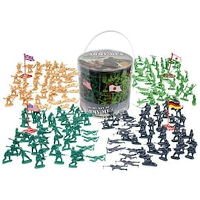 . Army Men Action Figures - 200 WwIi Toy Soldiers - Big Bucket of World War II Military Men in Realistic Poses - 26 Unique SculptsInclude mais de 200 soldados de brinquedo da Segunda Guerra Mundial e 4 bandeiras - 26 poses únicasSAtures militares da América, Alemanha, Japão e Grã-Bretanha separados por cor! Ótimo para tempo de jogo, projetos de classe, aulas de história e amasInclude carregando case para fácil armazenamento e transporte