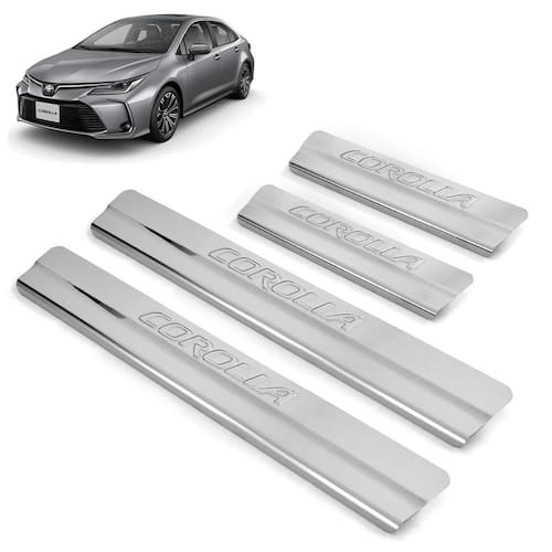 Soleira aço inox 4 porta brasikar corolla 2022 Soleira aço inox 4 porta brasikar corolla 2020 2021 2022 Sobre o produto: Pelo fato de ser produzida em aço inoxidável, esta soleira é super-resistente e não enferruja. Especificação técnica: Alta resistência. Rigoroso controle de qualidade. Maior cobertura da área das soleiras. Corte e escrito em alto relevo. Identificação do modelo de cada soleira. Não deixa rebarba por ser cortado a laser. Fabricado em aço inox de 1mm de alta qualidade. Fixação por fita dupla face, a melhor do mercado. Tamanho dianteira: 45cm x 5,5cm cxa . Tamanho traseira: 28cm x 5,5cm cxa . Conteúdo da embalagem: 02 soleiras dianteiras. 02 soleiras traseiras. Compatível com: Toyota corolla 2020 à 2022 compatível para todas as versões de 03 meses, contra defeitos de fabricação. Imagens ilustrativas. Recomendamos que a instalação seja realizada por um . ----------------------------- Soleira aço inox 4 porta brasikar corolla 2020-2022 ----------------------------- Este produto é vendido e entregue pela texas 4x4 A maior rede de lojas com os menores preços em acessórios para carros e pick-ups Seu produto acompanha e . Atenção: as compras realizadas em nome de pessoa jurídica estão sujeitas à cobrança de icms, conforme protocolo icms 41, de 4 de abril de 2008. Caso você tenha dúvidas sobre o percentual a ser aplicado, consulte a cláusula segunda, 1 do referido protocolo. Marca: Não Informado