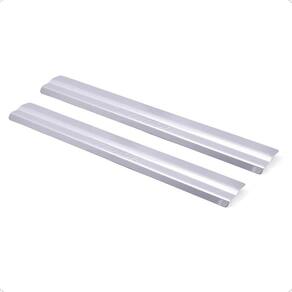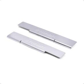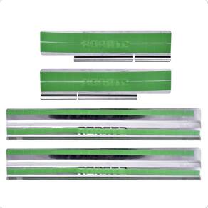 Especificação técnica: Alta resistência. Rigoroso controle de qualidade. Maior cobertura da área das soleiras. Corte e escrito em alto relevo. Identificação do modelo de cada soleira. Não deixa rebarba por ser cortado a laser. Fabricado em aço inox de 1mm de alta qualidade. Fixação por fita dupla face, a melhor do mercado. Tamanho dianteira: 46 cm x 6 cm cxa . Tamanho traseira: 32 cm x 5 cm cxa .