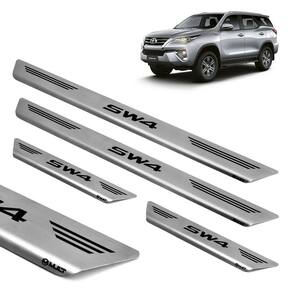 pelo fato de ser produzida em ao inoxid vel, esta soleira super-resistente e no enferruja. A instalao f cil, e pode ser feita em casa sem nenhum problema. A fixao personalizada, feita com fita 3m especial, que no altera a espessura do produto, garantindo assim excelente durabilidade sem causar danos ao seu veculo. A soleira de porta protege seu carro contra riscos, alm de proporcionar um visual esportivo para o automvel, pois personalizado e fabricado sob medida para cada veculo com alto padro de tecnologia e matria prima. Especificaes: alta resistncia. Rigoroso controle de qualidade. Maior cobertura da rea das soleiras. Corte e gravao a laser. Identificao do modelo de cada soleira. No deixa rebarba por ser cortado a laser. Fabricado em ao inox escovado de 0,6mm de alta qualidade. Fixao por fita dupla face 3m, a melhor do mercado. Tamanho dianteiro: 50 cm x 5 cm cxa . Tamanho traseira : 25 cm x 5 cm cxa . Contedo da embalagem: 02 - soleiras dianteiras. 02 - soleiras traseiras. Compatvel com: toyota hilux sw4 2005. . . 2023 compatvel para todas as verses