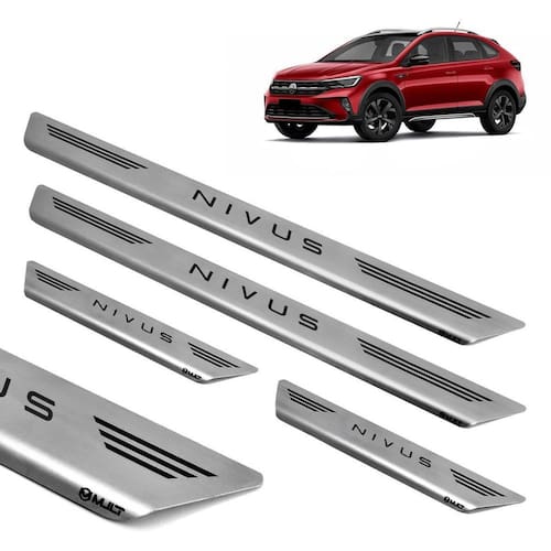 pelo fato de ser produzida em aço inoxidável, esta soleira é super-resistente e não enferruja. A instalação é fácil, e pode ser feita em casa sem nenhum problema. A fixação é personalizada, é feita com fita 3m especial, que não altera a espessura do produto, garantindo assim excelente durabilidade sem causar danos ao seu veículo. A soleira de porta protege seu carro contra riscos, além de proporcionar um visual esportivo para o automóvel, pois é personalizado e fabricado sob medida para cada veículo com alto padrão de tecnologia e matéria prima. Especificações: alta resistência. Rigoroso controle de qualidade. Maior cobertura da área das soleiras. Corte e gravação a laser. Identificação do modelo de cada soleira. Não deixa rebarba por ser cortado a laser. Fabricado em aço inox escovado de 0,6mm de alta qualidade. Fixação por fita dupla face 3m, a melhor do mercado. Tamanho dianteira : 50 cm x 4 cm cxa . Tamanho traseira : 20 cm x 4 cm cxa . Conteúdo da embalagem: 02 - soleiras dianteiras. 02 - soleiras traseiras. Compatível com: volkswagen nivus 2020 à 2022 compatível para todas as versões