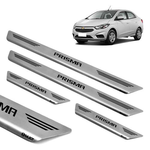 pelo fato de ser produzida em aço inoxidável, esta soleira é super-resistente e não enferruja. A instalação é fácil, e pode ser feita em casa sem nenhum problema. A fixação é personalizada, é feita com fita 3m especial, que não altera a espessura do produto, garantindo assim excelente durabilidade sem causar danos ao seu veículo. A soleira de porta protege seu carro contra riscos, além de proporcionar um visual esportivo para o automóvel, pois é personalizado e fabricado sob medida para cada veículo com alto padrão de tecnologia e matéria prima. Especificações: alta resistência. Rigoroso controle de qualidade. Maior cobertura da área das soleiras. Corte e gravação a laser. Identificação do modelo de cada soleira. Não deixa rebarba por ser cortado a laser. Fabricado em aço inox escovado de 0,6mm de alta qualidade. Fixação por fita dupla face 3m, a melhor do mercado. Tamanho dianteiro: 50 cm x 5 cm cxa . Tamanho traseira: 20 cm x 5 cm cxa . Conteúdo da embalagem: 02 - soleiras dianteiras. 02 - soleiras traseiras. Compatível com: chevrolet prisma 2013 à 2022 compatível para todas as versões