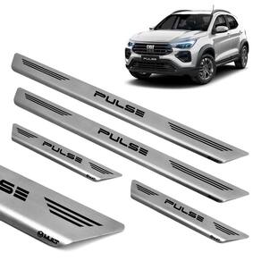 pelo fato de ser produzida em aço inoxidável, esta soleira é super-resistente e não enferruja. A instalação é fácil, e pode ser feita em casa sem nenhum problema. A fixação é personalizada, é feita com fita 3m especial, que não altera a espessura do produto, garantindo assim excelente durabilidade sem causar danos ao seu veículo. A soleira de porta protege seu carro contra riscos, além de proporcionar um visual esportivo para o automóvel, pois é personalizado e fabricado sob medida para cada veículo com alto padrão de tecnologia e matéria prima. Especificações: alta resistência. Rigoroso controle de qualidade. Maior cobertura da área das soleiras. Corte e gravação a laser. Identificação do modelo de cada soleira. Não deixa rebarba por ser cortado a laser. Fabricado em aço inox escovado de 0,6mm de alta qualidade. Fixação por fita dupla face 3m, a melhor do mercado. Tamanho dianteiro: 40 cm x 4 cm cxa . Tamanho traseira: 16 cm x 4 cm cxa . Conteúdo da embalagem: 02 - soleiras dianteiras. 02 - soleiras traseiras. Compatível com: fiat pulse 2022 à 2023 compatível para todas as versões