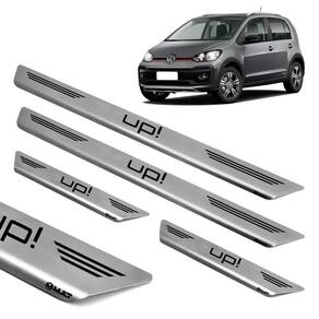 pelo fato de ser produzida em aço inoxidável, esta soleira é super-resistente e não enferruja. A instalação é fácil, e pode ser feita em casa sem nenhum problema. A fixação é personalizada, é feita com fita 3m especial, que não altera a espessura do produto, garantindo assim excelente durabilidade sem causar danos ao seu veículo. A soleira de porta protege seu carro contra riscos, além de proporcionar um visual esportivo para o automóvel, pois é personalizado e fabricado sob medida para cada veículo com alto padrão de tecnologia e matéria prima. Especificações: alta resistência. Rigoroso controle de qualidade. Maior cobertura da área das soleiras. Corte e gravação a laser. Identificação do modelo de cada soleira. Não deixa rebarba por ser cortado a laser. Fabricado em aço inox escovado de 0,6mm de alta qualidade. Fixação por fita dupla face 3m, a melhor do mercado. Tamanho dianteiro: 50 cm x 5 cm cxa . Tamanho traseira: 20 cm x 5 cm cxa . Conteúdo da embalagem: 02 - soleiras dianteiras. 02 - soleiras traseiras. Compatível com: volkswagen up 2014 à 2023 compatível para todas as versões