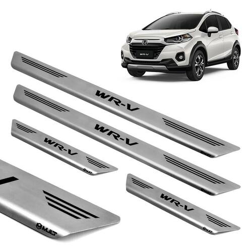 pelo fato de ser produzida em aço inoxidável, esta soleira é super-resistente e não enferruja. A instalação é fácil, e pode ser feita em casa sem nenhum problema. A fixação é personalizada, é feita com fita 3m especial, que não altera a espessura do produto, garantindo assim excelente durabilidade sem causar danos ao seu veículo. A soleira de porta protege seu carro contra riscos, além de proporcionar um visual esportivo para o automóvel, pois é personalizado e fabricado sob medida para cada veículo com alto padrão de tecnologia e matéria prima. Especificações: alta resistência. Rigoroso controle de qualidade. Maior cobertura da área das soleiras. Corte e gravação a laser. Identificação do modelo de cada soleira. Não deixa rebarba por ser cortado a laser. Fabricado em aço inox escovado de 0,6mm de alta qualidade. Fixação por fita dupla face 3m, a melhor do mercado. Tamanho dianteiro: 50 cm x 5 cm cxa . Tamanho traseira: 20 cm x 5 cm cxa . Conteúdo da embalagem: 02 - soleiras dianteiras. 02 - soleiras traseiras. Compatível com: honda wr-v 2017 à 2022 compatível para todas as versões