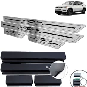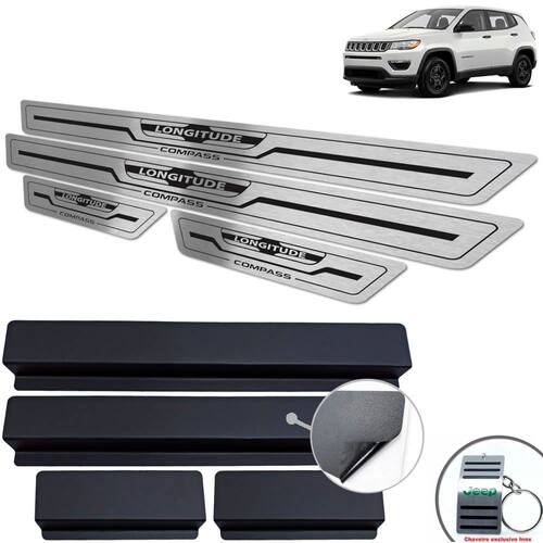 Soleira Aço Inox Jeep Compass Longitude Preto Baixo Relevo