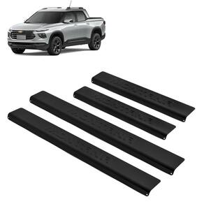 Especificação técnica: Alta resistência. Pintura eletrostática na cor preta. Rigoroso controle de qualidade. Maior cobertura da área das soleiras. Corte e escrito em alto relevo. Identificação do modelo de cada soleira. Não deixa rebarba por ser cortado a laser. Fabricado em alumínio de 1mm de alta qualidade. Fixação por fita dupla face, a melhor do mercado. Tamanho dianteira: 40 cm x 4,5 cm cxa . Tamanho traseira: 28 cm x 4,5 cm cxa .