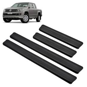 sobre o produto: pelo fato de ser produzida em alumínio, esta soleira é super-resistente e não enferruja. A soleira de porta protege seu carro contra riscos, além de proporcionar um visual esportivo para o automóvel, pois é personalizado e fabricado sob medida para cada veículo com alto padrão de tecnologia e matéria prima. Especificação técnica: alta resistência. Pintura eletrostática na cor preta. Rigoroso controle de qualidade. Maior cobertura da área das soleiras. Corte e escrito em alto relevo. Identificação do modelo de cada soleira. Não deixa rebarba por ser cortado a laser. Fabricado em alumínio de 1mm de alta qualidade. Fixação por fita dupla face, a melhor do mercado. Tamanho dianteira: 52 cm x 5,5 cm cxa . Tamanho traseira: 29 cm x 5,5 cm cxa . Conteúdo da embalagem: 02 - soleiras dianteiras. 02 - soleiras traseiras. Compatível com: volkswagen amarok 2010 à 2023. compatível para todas as versões cabine dupla