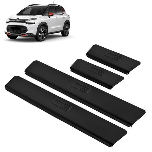 Especificação técnica: Alta resistência. Pintura eletrostática na cor preta. Rigoroso controle de qualidade. Maior cobertura da área das soleiras. Corte e escrito em alto relevo. Identificação do modelo de cada soleira. Não deixa rebarba por ser cortado a laser. Fabricado em alumínio de 1mm de alta qualidade. Fixação por fita dupla face, a melhor do mercado. Tamanho dianteira: 40 cm x 6,5 cm cxa . Tamanho traseira: 18,5 cm x 6,5 cm cxa .