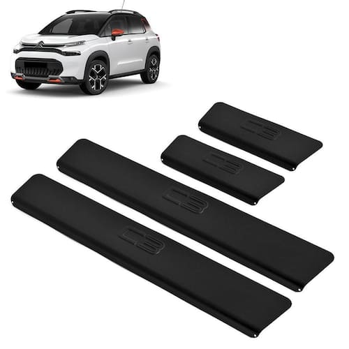 Sobre o produto: Pelo fato de ser produzida em alumínio, esta soleira é super-resistente e não enferruja. A soleira de porta protege seu carro contra riscos, além de proporcionar um visual esportivo para o automóvel, pois é personalizado e fabricado sob medida para cada veículo com alto padrão de tecnologia e matéria prima. Especificação técnica: Alta resistência. Pintura eletrostática na cor preta. Rigoroso controle de qualidade. Maior cobertura da área das soleiras. Corte e escrito em alto relevo. Identificação do modelo de cada soleira. Não deixa rebarba por ser cortado a laser. Fabricado em alumínio de 1mm de alta qualidade. Fixação por fita dupla face, a melhor do mercado. Tamanho dianteira: 40 cm x 6,5 cm cxa . Tamanho traseira: 18,5 cm x 6,5 cm cxa . Conteúdo da embalagem: 02 - soleiras dianteiras. 02 - soleiras traseiras. Compatível com: Citroen c3 2022 à 2023. compatível para todas as versões Garantia de 03 meses, contra defeitos de fabricação. Imagens ilustrativas. Recomendamos que a instalação seja realizada por um profissional. ----------------------------- ----------------------------- Este produto é vendido e entregue pela texas 4x4 A maior rede de lojas com os menores preços em acessórios para carros e pick-ups Atenção: as compras realizadas em nome de pessoa jurídica estão sujeitas à cobrança de icms, conforme protocolo icms 41, de 4 de abril de 2008. Caso você tenha dúvidas sobre o percentual a ser aplicado, consulte a cláusula segunda, 1 do referido protocolo.