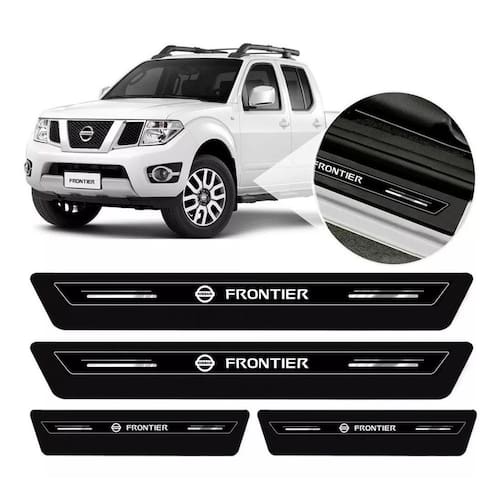 Adesivo soleira Porta Nissan Frontier Modelo Preto Platinum EmblemaTech Além de fazerem toda a diferença no acabamento do seu Nissan Frontier, esses adesivos para as soleiras das portas trazem proteção essencial para essa região do automóvel absorvendo os impactos dos sapatos dos passageiros e do motorista, evitando riscos. De fácil aplicação, as 4 peças tem verso autoadesivo e são super resistentes, sendo feitas em material resinado durável e com proteção contra ressecamento. Sua cor preta é super moderna e grafia cromada traz um toque de esportividade para o carro. Cor Disponível: Preto com Grafia Cromada Compatível com: Nissan Frontier Especificação Técnica: Feito em Material Resinado Resistente Disponível na Cor Preta Detalhes em Cromo de Alto Brilho Personalizados com Grafia da Marca do Carro Fixação por Verso Adesivo Maior Resistência e Proteção para a Soleira da Porta Conteúdo da Embalagem: 04 Adesivos Resinados 04 Adesivos Poroso Dica: A aplicação deve ser feita sobre a superfície limpa e seca. Recomenda-se evitar molhar o veículo pelo período mínimo de 24 horas após a fixação, para garantir a sua estabilidade. Importante: de 3 meses. Valor do Jogo. Imagens Meramente Ilustrativas. Recomendamos que a instalação seja feita por profissional especializado e não nos responsabilizamos pelo mau uso do produto. Ean: 7908698107595