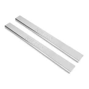 Especificação técnica: Alta resistência. Rigoroso controle de qualidade. Maior cobertura da área das soleiras. Corte e escrito em alto relevo. Identificação do modelo de cada soleira. Não deixa rebarba por ser cortado a laser. Fabricado em aço inox de 1mm de alta qualidade. Fixação por fita dupla face, a melhor do mercado. Tamanho dianteira: 50cm x 4,5cm (cxa). Tamanho traseira: 29cm x 4,5cm (cxa).