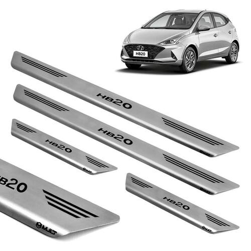 pelo fato de ser produzida em aço inoxidável, esta soleira é super-resistente e não enferruja. A instalação é fácil, e pode ser feita em casa sem nenhum problema. A fixação é personalizada, é feita com fita 3m especial, que não altera a espessura do produto, garantindo assim excelente durabilidade sem causar danos ao seu veículo. A soleira de porta protege seu carro contra riscos, além de proporcionar um visual esportivo para o automóvel, pois é personalizado e fabricado sob medida para cada veículo com alto padrão de tecnologia e matéria prima. Especificações: alta resistência. Rigoroso controle de qualidade. Maior cobertura da área das soleiras. Corte e gravação a laser. Identificação do modelo de cada soleira. Não deixa rebarba por ser cortado a laser. Fabricado em aço inox escovado de 0,6mm de alta qualidade. Fixação por fita dupla face 3m, a melhor do mercado. Tamanho dianteira : 45 cm x 05 cm cxa . Tamanho traseira : 20 cm x 05 cm cxa . Conteúdo da embalagem: 02 - soleiras dianteiras. 02 - soleiras traseiras. Compatível com: hyundai hb20 hatch 2013 à 2022 compatível para todas as versões do modelo hatch