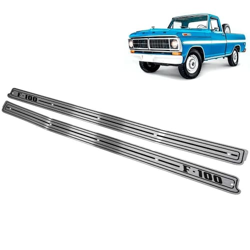 - Soleira de porta fabricada em inox; - Gravação em baixo relevo feita por CNC; - Acabamento escovado de alto padrão; - Compatível com os modelos de F100 e F1000 fabricados entre os anos de 1972 e 1992.