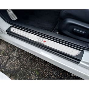 Fabricado em aço inox 304 o kit soleiras, vinil, pedaleiras e descanso de pé além de ajudar a proteger o local onde há o desgaste devido o calçado ficar o tempo todo esfregando, deixará o interior do veículo personalizado e com muito mais estilo.