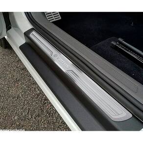 Fabricado em aço inox 304 o kit soleiras, vinil, pedaleiras e descanso de pé além de ajudar a proteger o local onde há o desgaste devido o calçado ficar o tempo todo esfregando, deixará o interior do veículo personalizado e com muito mais estilo.