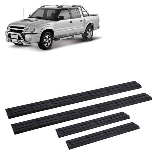 Especificações: Produto na cor preto. Fabricadas em plástico injetado. Fácil Instalação. Textura Antiderrapante. Fixação por fita 3m dupla face. Possui 4 Peças. Medidas da soleira dianteira: 78,5 Cm X 8 Cm. Medidas da soleira traseira: 44,5 Cm X 8 Cm.