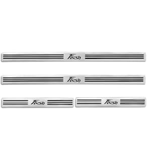 A soleira resinada exclusiva, fixada nos pisantes do veículo, impede a danificação do mesmo devido ao fluxo de motorista e passageiros, no ato do embarque e desembarque. Além de sua importância na conservação do carro, possui uma aparência única, pelo seu visual moderno e elegante.