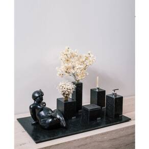 - Durabilidade: Fabricado em Mármore Preto Escovado, que garante longa vida útil.