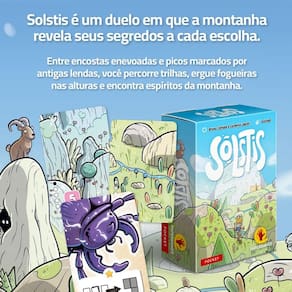 Especificações Técnicas Nome: Solstis Autores: Bruno Cathala e Corentin Lebrat Arte: Gorobe Editora: Lumberjacks Studio / Hachette Boardgames Número de Jogadores: 2 Tempo de Jogo: aproximadamente 15 minutos Idade Recomendada: a partir de 8 anos Idioma: Português regras e componentes Categoria: Jogo de cartas, colocação de peças e estratégia leve Marca: Não Informado
