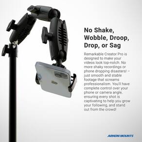 Suporte de celular Pro da Arkon para vídeos de demonstração de culinária e artesanato - Se estende de 43 a 74 cm, e a base pesada mantém o suporte no lugar. - Para transmissão ao vivo, teledifusão ao vivo, fazer vídeos ao vivo, demonstrações de projetos tipo "faça você mesmo(a)" enquanto faz artesanato, cozinha, pinta, desenha, etc. - Para todos os smartphones, incluindo iPhone & Galaxy. - Serve em celulares com capa até 900 g e até 4 polegadas (10 cm) de largura.