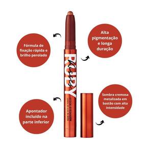 A Sombra para Olhos em Barra Stick Eyeshadow possui fórmula de fixação rápida e brilho perolado de longa duração adiciona dimensão e drama aos olhos. Pode usar como sombra, destaque e até delineador. Apontador incluído na parte inferior para ajudar na aplicação fácil e precisa. Sombra cremosa metalizada em bastão com alta pigmentação e intensidade.