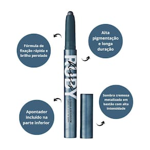 A Sombra para Olhos em Barra Stick Eyeshadow possui fórmula de fixação rápida e brilho perolado de longa duração adiciona dimensão e drama aos olhos. Pode usar como sombra, destaque e até delineador. Apontador incluído na parte inferior para ajudar na aplicação fácil e precisa. Sombra cremosa metalizada em bastão com alta pigmentação e intensidade.