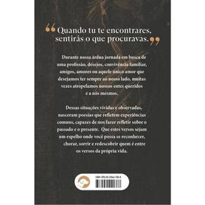 "Quando tu te encontrares, sentirás o que procuravas." | Durante nossa árdua jornada em busca de uma profissão, desejos, convivência familiar, amigos, amores ou aquele único amor que desejamos ter sempre ao nosso lado, muitas vezes atropelamos nossos entes queridos e a nós mesmos. | Dessas situações vividas e observadas, nasceram poesias que refletem experiências comuns, capazes de nos fazer refletir sobre o passado e o presente. Que estes versos sejam um espelho onde você possa se reconhecer, chorar, sorrir e redescobrir quem é entre os versos da própria vida.