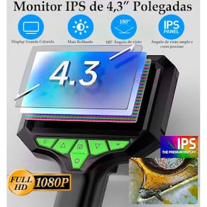 Monitor de 4,3" IPS Full HD 1080p, garantindo imagens nítidas, cores vivas e excelente visibilidade de qualquer ângulo. Ideal para mecânicos, técnicos, engenheiros e profissionais que precisam de uma solução eficiente para visualizar locais de difícil acesso.