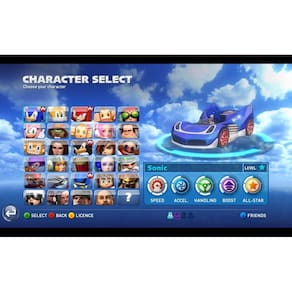 Corra como Sonic e várias lendas do All-Stars e prepare-se para a transformação! Acelere através de terra, água e ar numa batalha em alta velocidade para a linha de chegada, enquanto seu incrível veículo que se transforma muda de carro para bote, e de bote para avião no meio da corrida. Aperfeiçoe suas habilidades de corrida enquanto derrapa, gira e acelera para ultrapassar seus rivais, ou usa táticas e libera seu poder All-Star para ganhar vantagem. Não é apenas com seus companheiros de corrida que você tem que se preocupar: com pistas que cedem e rios que secam, novas rotas emergem e seu veículo se transforma para se aproveitar do terreno. Descubra rotas alternativas e atalhos para completar a corrida com perfeição nesta disputa cheia de adrenalina para a linha de chegada - pilotar nunca será como antes. Recursos do Jogo - Veículos que se transformam completamente: Esta não é uma corrida qualquer. Cada personagem é equipado com seu veículo exclusivo que pode se transformar em carro, bote ou avião para se aproveitar dos vários terrenos. Cada veículo se comporta diferente e o jogador deve dominar os três para triunfar. - Pistas dinâmicas: Vá pela terra, água ou ar enquanto corre em pistas dinâmicas. Descubra rotas alternativas, encontre novos power-ups e evite os perigos que surgem enquanto você corre para a vitória, cada corrida é única! - Escolha seu piloto: Corra com um dos 20+ lendários All-Stars. Qual outro jogo você vê um porco-espinho batalhar contra um macaco, um pirata do céu e um anão com um machado? - Ferramentas de devastação: Utilize um arsenal de que exigem habilidade para mirar, disparar, evadir e bloquear. Os movimentos All-Stars retornam! Desta vez, seu medidor All-Star aumenta quanto mais você pilota com estilo e ousadia, permitindo você massacrar seus oponentes! - Experiência máxima de jogo: Antigas rivalidades podem ser acertadas e novas criadas em corridas com até 8 jogadores online. Viaje através dos mundos All-Stars para aproveitar uma enorme variedade de modos e desafios, incluindo Grand Prix, Arenas e um incrível World Tour.