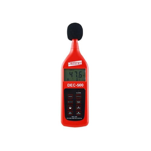 SONÔMETRO MOD. DEC-500, FAIXA DE MEDIÇÃO DE 30 A 130DB, PONDERAÇÃO A, C, FAST E SLOW, MEDIÇÃO DE LEQ COM CERTIFICADO DE CALIBRAÇÃO RASTREÁVEL RBC DESCRIÇÃO Sonômetro mod. DEC-500, faixa de medição de 30 a 130dB, ponderação A, C, Fast e Slow, medição de LEQ com memória, alarme, HOLD máximo e configuração do tempo de integração. DESCRIÇÃO CERTIFICADO CALIBRAÇÃO: Certificado de Calibração para Decibelímetro 2 pontos: 94 e 114 dB Calibração rastreável RBC Procedência: Laboratório de Calibração Instrutherm DESTAQUES: Integração Leq, ajuste do tempo de integração, função alarme, faixa 30 a 130dB, memória, microfone destacável e HOLD máximo. APLICAÇÕES: Este instrumento, de utilidade geral, foi projetado com base nas exigências dos clientes que necessitam realizar medições de nível sonoro de maneira simples e prática. De custo acessível, compacto e fácil de transportar é o instrumento ideal para medições de referência acústica tais como comparativo de nível sonoro automotivo, diferenças de níveis entre exterior e interior para estudo de isolação acústica de estúdios, auditórios e também referência para isolação acústica de igrejas, boates, instalações de som profissionais. Amplamente utilizado em cursos técnicos, escolas e universidades para demonstrar a teoria de medição e estudos baseados no ruído. ESPECIFICAÇÕES TÉCNICAS: Saída RS-232 Leitura Máxima Congelamento de Leitura Desligamento Automático Indicação de bateria Saída AC/DC Display:LCD, cristal líquido de 4 dígitos multifunção com iluminação Medições:Lp, Lmax, Leq, Ln Escala Lp:30 a 130dB(A), 35 a 130dB(C,F) Escala Leq:30 a 130dB (10s, 1min, 5min, 10min, 15min, 30min, 1 hora, 8 horas, 24 horas) Ln:0 a 100% Resolução:0.1dB Precisão:±1dB Calibração Interna: Sinal 94dB a 1KHz Ponderação de freqüência:'A', 'C', 'F' (Flat - plano) Ponderação de resposta:Rápido (125ms), Lento (1 segundo) Registro de dados em tempo real Converte o registro de dados para Excel Microfone: de eletreto destacável de ½ polegada Memória para 30 medições Escala de frequência:20 a 12.500Hz Ajuste de alarme:30 a 130dB Alarme:LED e contato de relé opcional (NC) Conexão:RS-232 Freqüência:31,5Hz a 8,5Khz Linearidade:50dB Seleção de Escalas:Manual Alimentação:4 pilhas de 1.5V (AAA) ou 6V DC Tamanho:236 x 63 x 26mm Peso:170g ACESSÓRIOS FORNECIDOS: Maleta para transporte Protetor de Vento Certificado de calibração rastreável rbc