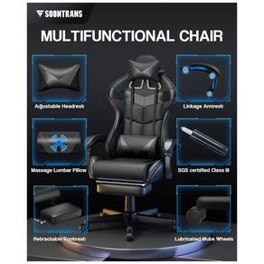 Soontrans Cadeira Gamer Ergonômica Reclinável com Apoio Lombar e Cabeça, Preta