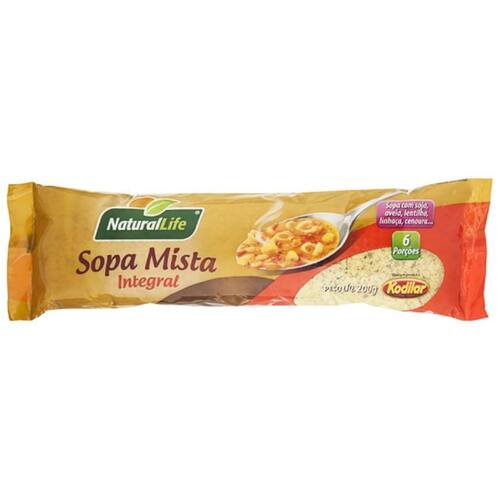 Sopa mista integral kodilar 200g a sopa mista é produzida com proteínas vegetais, como a soja, lentilha e linhaça. Apresenta fibras, baixo valor calórico e reduzido teor de gorduras.
