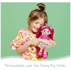 Sophie, da Coleção June Garden Snuggle Cuties, irradia calor com seu rosto feminino lindamente bordado e sorriso amigável. Esta boneca possui cabelos encaracolados de fios cor de rosa vibrantes, complementados por uma faixa de cabelo branca que combina com seu vestido estampado de bolinhas coloridas. Além de sua estética encantadora, Sophie é preenchida com enchimentos macios eco-friendly de rPET, destacando um compromisso com a sustentabilidade. Criada meticulosamente para crianças a partir de 1 ano, ela promete ser uma companheira segura e acolhedora, perfeitamente dimensionada para as mãos pequenas acariciar e abraçar. Sophie é um presente especial e único para qualquer irmã mais velha. O presente reforça a importância de ser uma irmã mais velha e oferece conforto durante a transição. Design Adorável e Amigável: Sophie, a 'Boneca Eu Sou a Irmã Mais Velha', apresenta um rosto feminino lindamente bordado com um sorriso caloroso e amigável, além de detalhes chamativos como cabelos encaracolados cor de rosa suave e uma faixa de cabelo branca combinando com seu vestido vibrante estampado de bolinhas coloridas. Ecologicamente Correta: Preenchida com enchimentos macios de rPET, a Coleção Snuggle Cuties enfatiza a proteção ambiental e práticas sustentáveis. Tamanho Perfeito para Abraços: Com dimensões de 36,8 x 22,9 x 8,9 centímetros, Sophie tem o tamanho ideal para as mãos pequenas segurarem, abraçarem e acariciarem, tornando-a a companheira perfeita para abraços. Segura para Crianças Pequenas: Projetada para crianças a partir de 1 ano, Sophie é fabricada com materiais seguros, prometendo ser um presente acolhedor e um companheiro aconchegante para toda menina jovem.