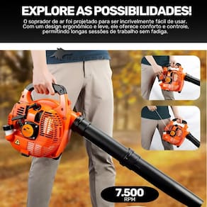 Leia atentamente a descrição antes de comprar o produto - Produto de alta qualidade e durabilidade. possibilidades com nosso produto - Manutenção de áreas verdes como jardins e campos de futebol - Auxilia no amontoamento de folhas e restos de grama - Varredura de ruas, estacionamentos e escadarias, pátios em geral - Limpeza de equipamentos agrícolas, de construção, silos de cereais. - Limpeza de calhas de chuva e secagem de pavimentos ficha Técnica Aplicação: Motor: Gasolina 2 tempos - 25:1 Potência:0,9hp - 26cc Rotação: Máxima 7,500 RPM - Na Lenta 3.000 RPM Velocidade do Ar:77,78m/s - 280 km/h Volume do Ar:470m Partida: Manual Retrátil Tanque:650 ml Consumo:0,650 litros por hora Autonomia: Aproximadamente 1 hora Nível de Ruído:114 Db Dimensão do Produto:34 x 23 x 92 cm- Peso:4,100 kg Embalagem:37 X 26 X 39 cm - Peso: 5,000 kg Acessórios:01 Dosador de Combustível, 01 Chave de Vela, 01 Chave Allen apresentação Em uma Caixa 37 x 26 x 39cm contendo: Motor do Soprador com o Duto Reto 70mm x 32cm 01 Motor do Soprador com Duto Reto 70mm x 320mm - 01 Duto Reto 70mm x 280mm - 01 Chave de Vela -01 Dosador de Combustível - 01 Chave Allen - 01 Parafuso Phillips 5 x 12mm com Arruela Lisa e Pressão e Manual do Produto. Marca: Não Informado