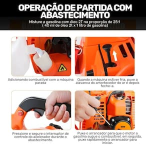 Leia atentamente a descrição antes de comprar o produto - Produto de alta qualidade e durabilidade. possibilidades com nosso produto - Manutenção de áreas verdes como jardins e campos de futebol - Auxilia no amontoamento de folhas e restos de grama - Varredura de ruas, estacionamentos e escadarias, pátios em geral - Limpeza de equipamentos agrícolas, de construção, silos de cereais. - Limpeza de calhas de chuva e secagem de pavimentos ficha Técnica Aplicação: Motor: Gasolina 2 tempos - 25:1 Potência:0,9hp - 26cc Rotação: Máxima 7,500 RPM - Na Lenta 3.000 RPM Velocidade do Ar:77,78m/s - 280 km/h Volume do Ar:470m Partida: Manual Retrátil Tanque:650 ml Consumo:0,650 litros por hora Autonomia: Aproximadamente 1 hora Nível de Ruído:114 Db Dimensão do Produto:34 x 23 x 92 cm- Peso:4,100 kg Embalagem:37 X 26 X 39 cm - Peso: 5,000 kg Acessórios:01 Dosador de Combustível, 01 Chave de Vela, 01 Chave Allen apresentação Em uma Caixa 37 x 26 x 39cm contendo: Motor do Soprador com o Duto Reto 70mm x 32cm 01 Motor do Soprador com Duto Reto 70mm x 320mm - 01 Duto Reto 70mm x 280mm - 01 Chave de Vela -01 Dosador de Combustível - 01 Chave Allen - 01 Parafuso Phillips 5 x 12mm com Arruela Lisa e Pressão e Manual do Produto. Marca: Não Informado