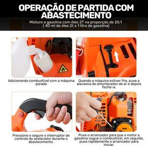 Leia atentamente a descrição antes de comprar o produto - Produto de alta qualidade e durabilidade. Possibilidades com nosso produto - Manutenção de áreas verdes como jardins e campos de futebol - Auxilia no amontoamento de folhas e restos de grama - Varredura de ruas, estacionamentos e escadarias, pátios em geral - Limpeza de equipamentos agrícolas, de construção, silos de cereais. - Limpeza de calhas de chuva e secagem de pavimentos Ficha Técnica Aplicação: Motor: Gasolina 2 tempos - 25:1 Potência:0,9hp - 26cc Rotação: Máxima 7,500 RPM - Na Lenta 3.000 RPM Velocidade do Ar:77,78m/s - 280 km/h Volume do Ar:470m Partida: Manual Retrátil Tanque:650 ml Consumo:0,650 litros por hora Autonomia: Aproximadamente 1 hora Nível de Ruído:114 Db Dimensão do Produto:34 x 23 x 92 cm- Peso:4,100 kg Embalagem:37 X 26 X 39 cm - Peso: 5,000 kg Acessórios:01 Dosador de Combustível, 01 Chave de Vela, 01 Chave Allen Apresentação Em uma Caixa 37 x 26 x 39cm contendo: Motor do Soprador com o Duto Reto 70mm x 32cm 01 Motor do Soprador com Duto Reto 70mm x 320mm - 01 Duto Reto 70mm x 280mm - 01 Chave de Vela -01 Dosador de Combustível - 01 Chave Allen - 01 Parafuso Phillips 5 x 12mm com Arruela Lisa e Pressão e Manual do Produto.