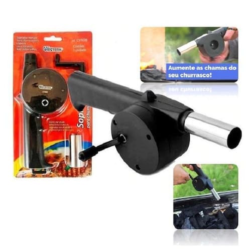 Soprador para churrasqueira lareira descriçãosoprador churrasqueira lareira manualo soprador manual para churrasqueira e lareira é idealizado para facilitar e ajustar o acendimento da chama e mantê-la acesa, de modo rápido e prático.Fácil de usar gire a manivela para produzir um foco dirigido de ar.Não utiliza pilhas ou baterias.Características:- dimensões da peça: 25 x 4,6 x 8cm- dimensões da embalagem: 14 x 5 x 26cm- material: pp, aço inoxidável- cor: preto- tipo de embalagem: blíster- marca: westernespecificações: Soprador manual; Para churrasqueira e lareira; Leve e prático; Não utiliza pilhas;instruções de uso: Encaixe bem a manivela e tubo no soprador. Coloque fogo no carvão. Direcione o tubo de soprador para a base da chama e gire suavemente a manivela no sentido horário. Para sua segurança, mantenha a ponta do soprador a uma distância mínima de 30 cm do fogo. Segure o soprador sempre pelo cabo. Não cubra a entrada de ventilação.Cuidados: Evite quedas e batidas. Guarde em local seguro. Guarde estas instruções para futuras consultas. Mantenha fora do alcance das crianças.Imagens ilustrativas