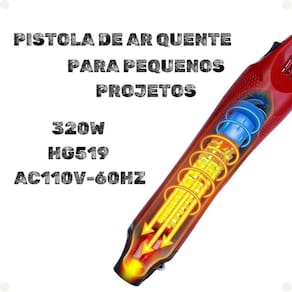 Principais Características e Benefícios: Potência de 320W: Proporciona um fluxo de ar forte para diversas tarefas, como remoção de tintas e vernizes, e retrabalhos em projetos eletrônicos.